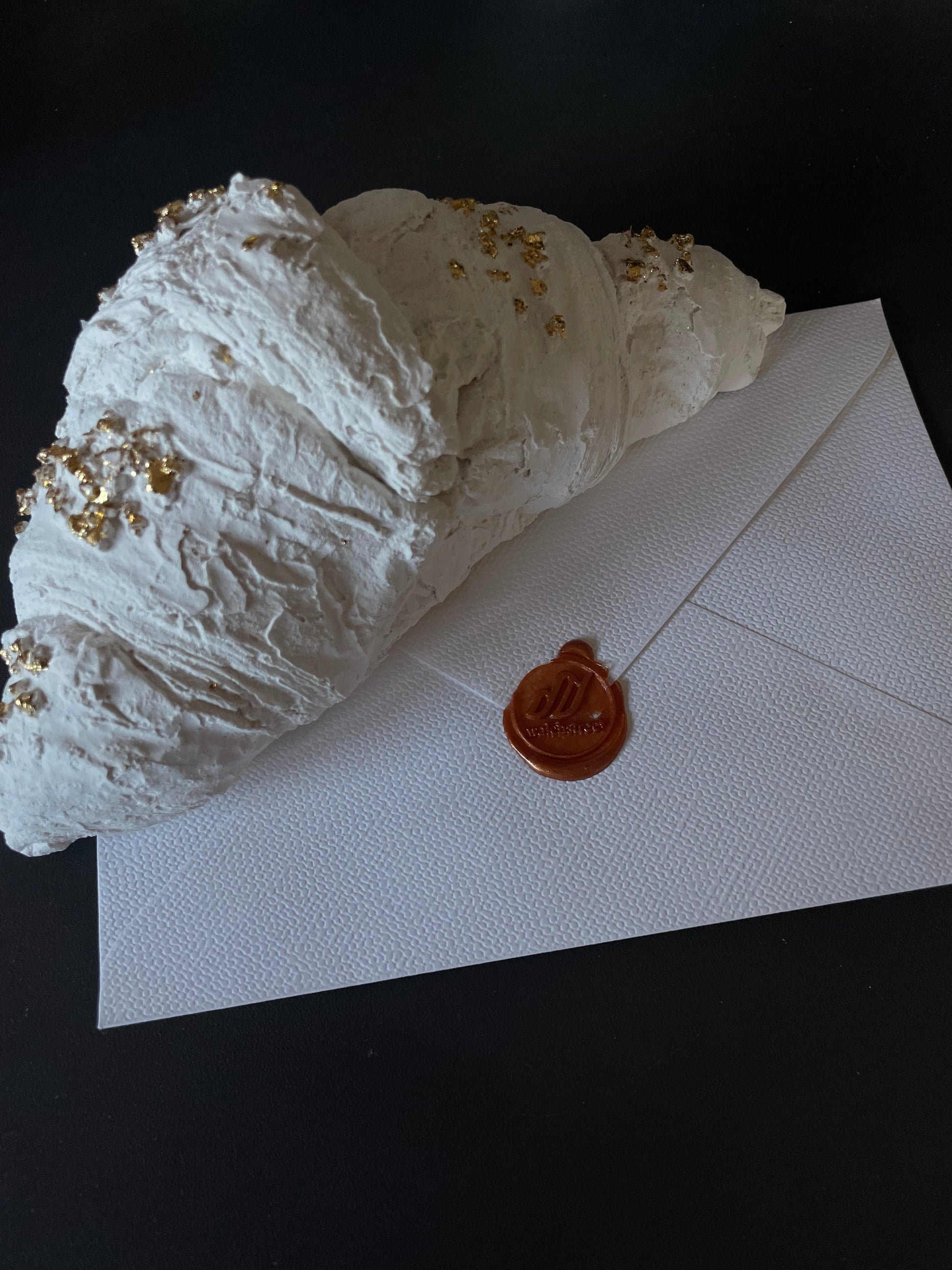 Ein skulpturales Croissant - eingefangen in mineralischem Gips, inspiriert vom französischen Frühstücksritual.